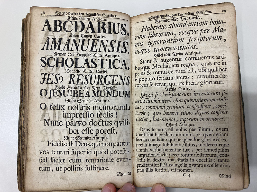 Among the historical letterforms employed by the early Turku printers, a set of large, bold, and ornately detailed capitals caught their attention. These letters were well suited to bridge the time gap, and also able to handle most functional needs of contemporary letterpress printing. With the help of Krefeld-based design researcher Daniel Reynolds and the Gutenberg Museum in Mainz, the capitals were traced back to their origin in Germany, around the turn of the 18th century.